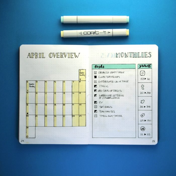 You can find links to my twitter and instagram accounts in the sidebar, if you want to keep up to date with more bullet journal spreads and my other illustrations and calligraphy work.